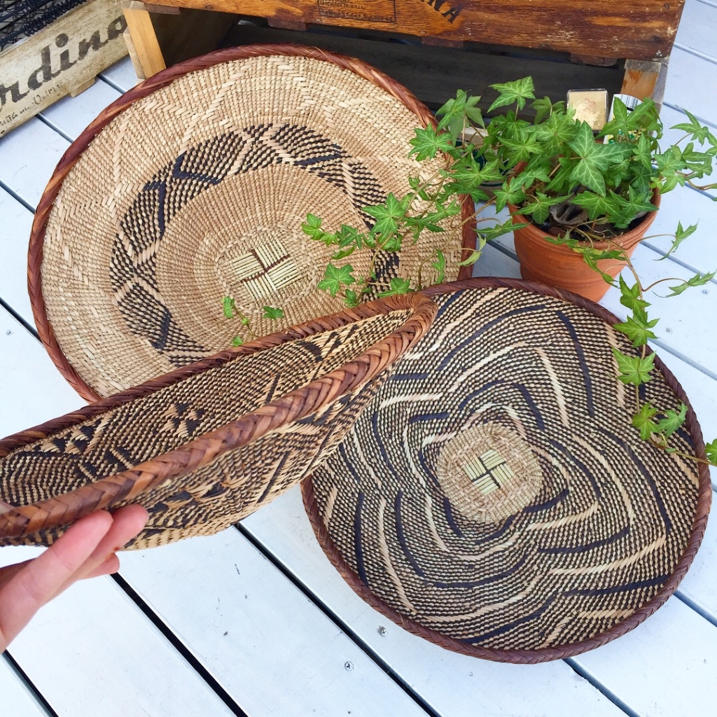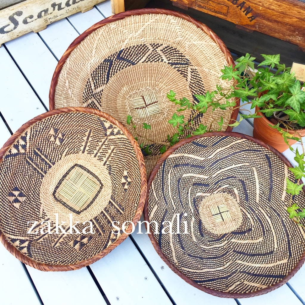 イララヤシで編まれた、お皿のような浅いバスケット。