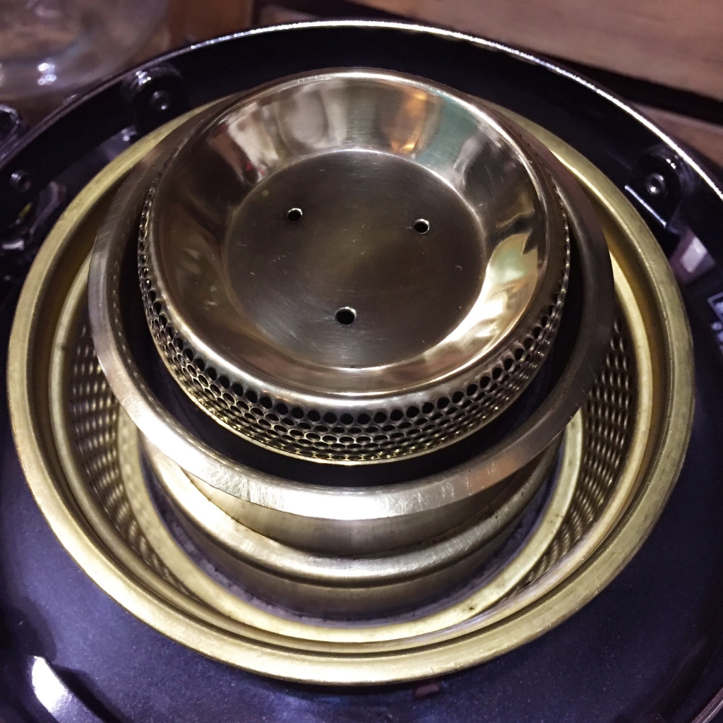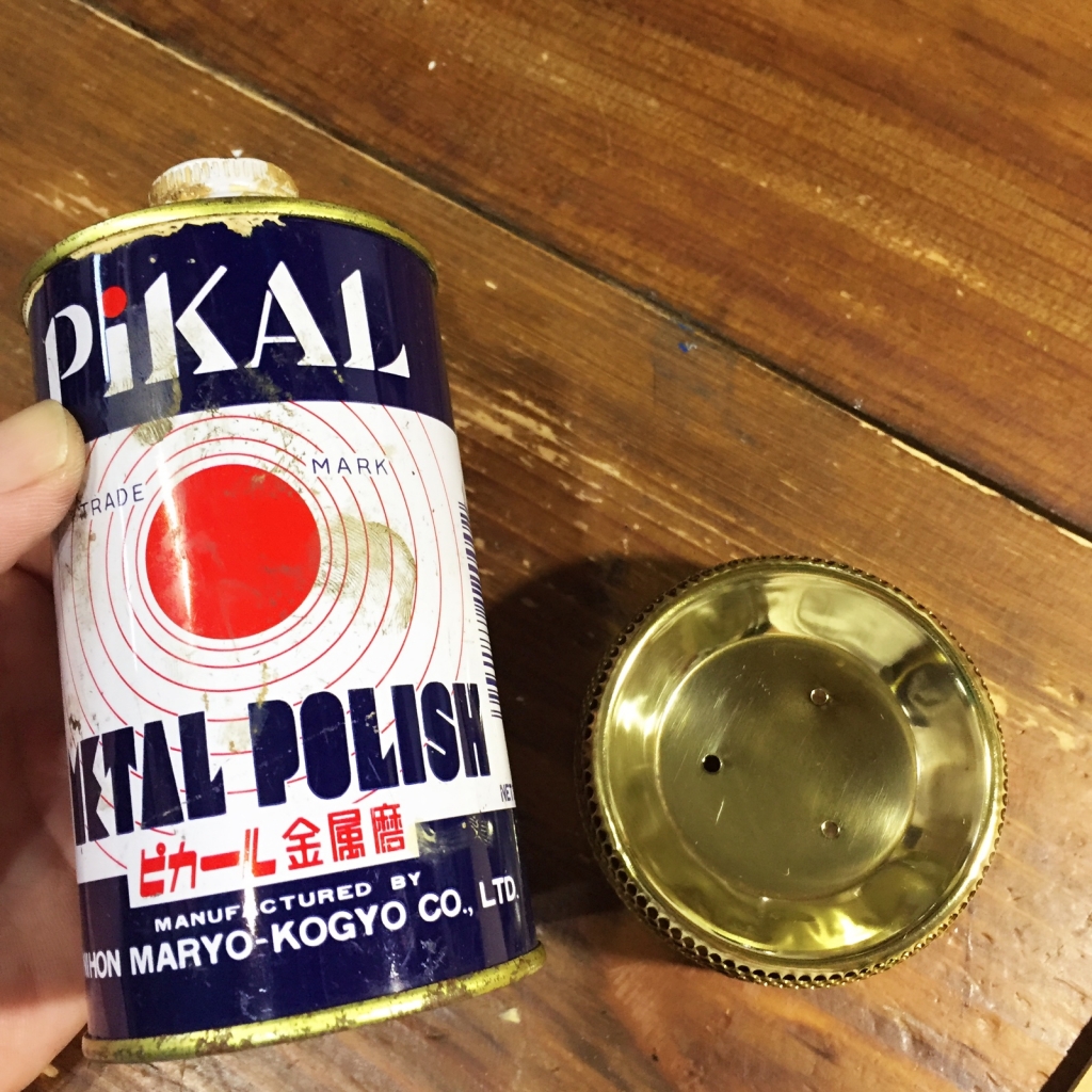 真鍮製の内炎板部分は見た目重視なパーツなので、磨き上げます↓