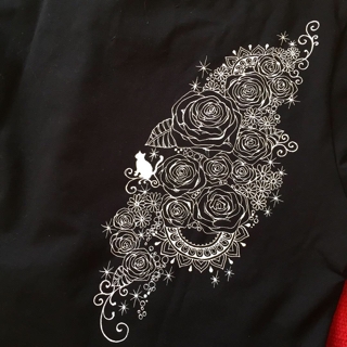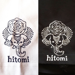 フラサークルのロゴと、袖に薔薇とぞうさん。