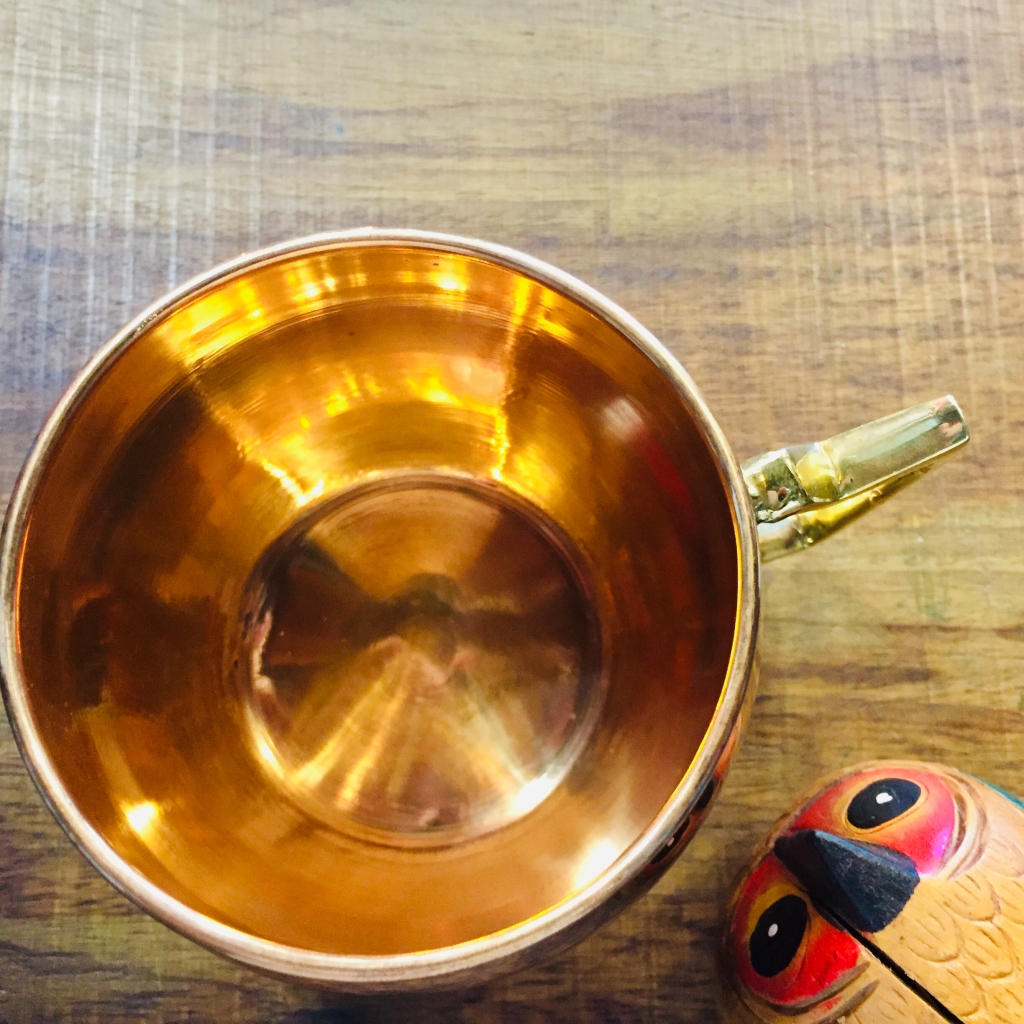 銅のマグカップは飲み物の熱が伝わって、冷え感をより唇に感じるので