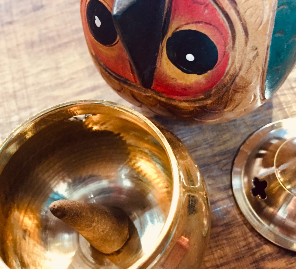 コーン香に火をつけて蓋をして、穴からもくもくする算段です☆