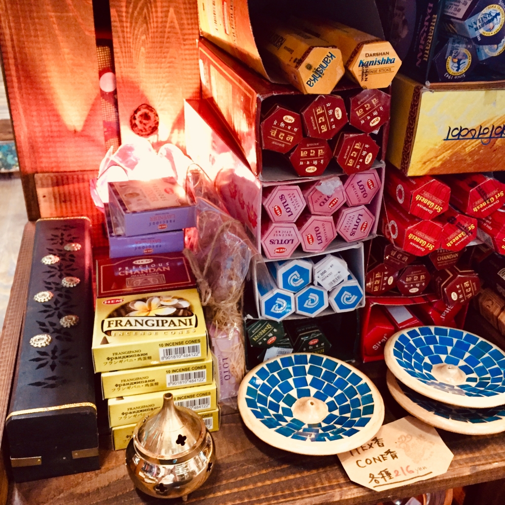 レジ前にお香コーナーがございまして、お香立ても色々ございます。