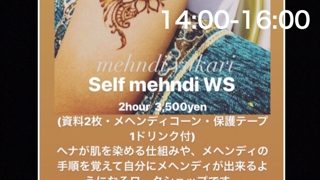 こんにちは。 イベントのお知らせ 8月5日(月) セルフメヘンディワークショップをやります。 残席ありまして もし参加ご希望の方いらっしゃいましたらご連絡くださいませ。 詳細は一番最後に記載しているメヘンディブログから 「メヘンディレッス...